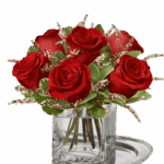 - Rosas Alaranjadas: Duas rosas em tom de laranja intenso adicionam um toque clássico e caloroso ao centro do arranjo.