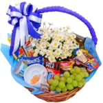 Essa é uma linda cesta de café da manhã luxo, ideal para presentear em ocasiões especiais como aniversários ou gestos românticos. O conjunto combina itens de café da manhã com flores frescas, proporcionando uma experiência completa de presente